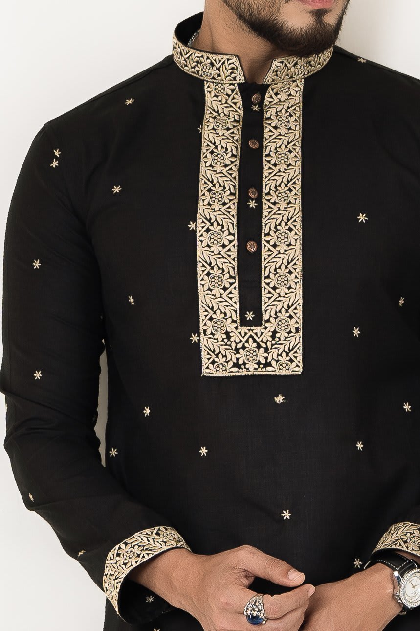 MEN’S ELITE PANJABI – Crafted with premium embroidered cotton fabric, offering an exquisite blend of tradition and sophistication. Designed for ultimate comfort, luxury, and style.