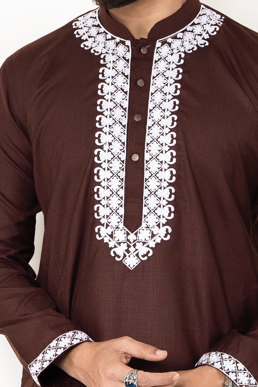 MEN’S ELITE PANJABI – Crafted with premium embroidered cotton fabric, offering an exquisite blend of tradition and sophistication. Designed for ultimate comfort, luxury, and style.