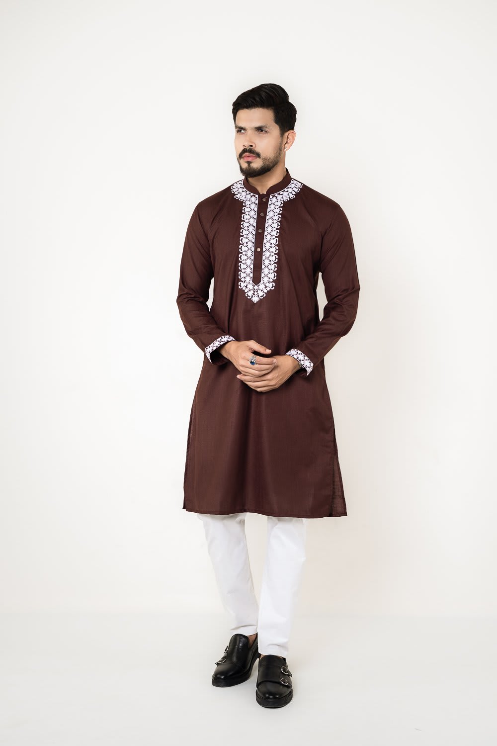 Experience the pinnacle of elegance with PanHabi’s Elite Panjabi, meticulously crafted from premium embroidered cotton fabric. This luxurious piece features intricate embroidery, a rich-textured design, and signature premium buttons, making it a perfect choice for special occasions like Eid, weddings, and festive gatherings.