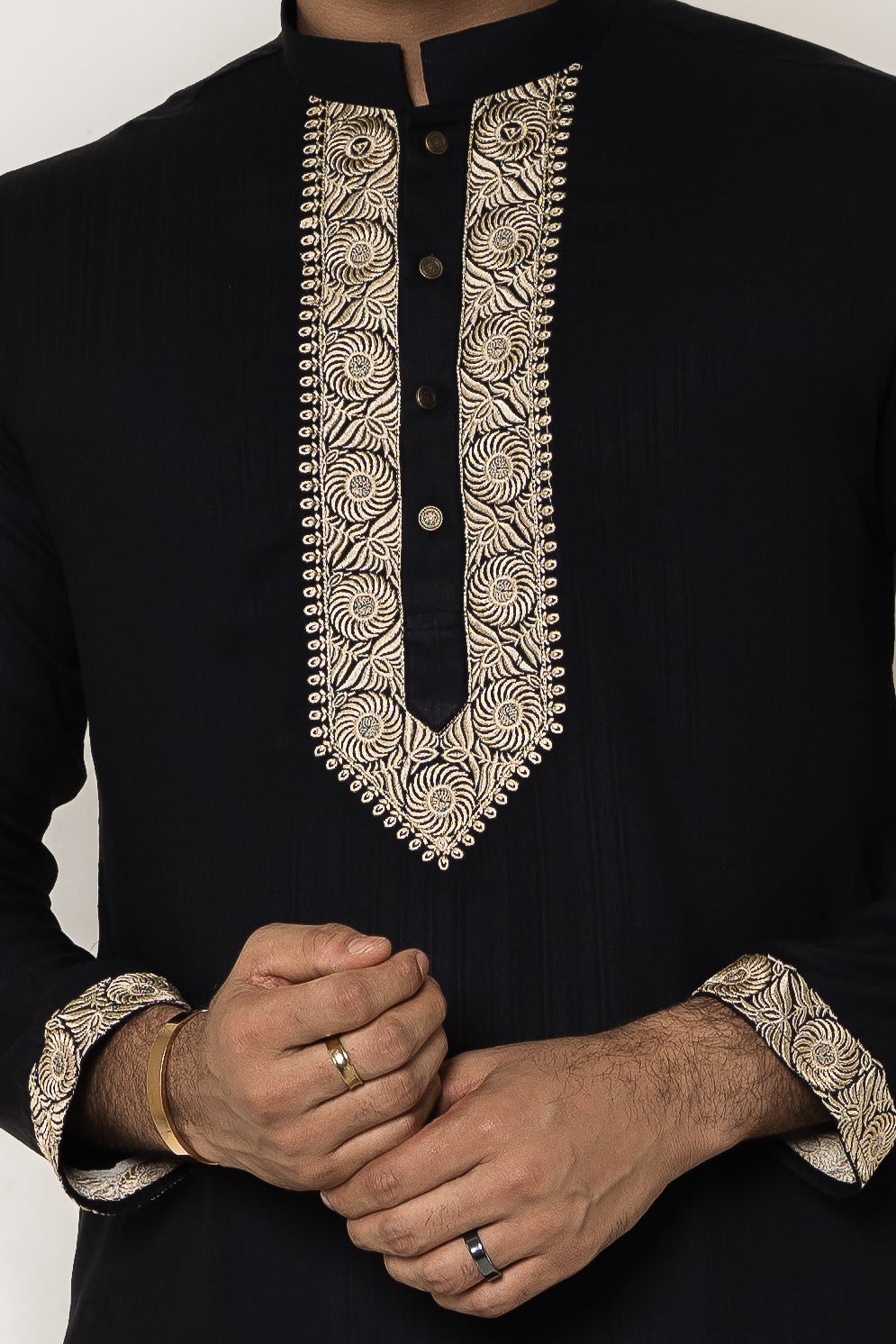MEN’S ELITE PANJABI – Crafted with premium embroidered cotton fabric, offering an exquisite blend of tradition and sophistication. Designed for ultimate comfort, luxury, and style.