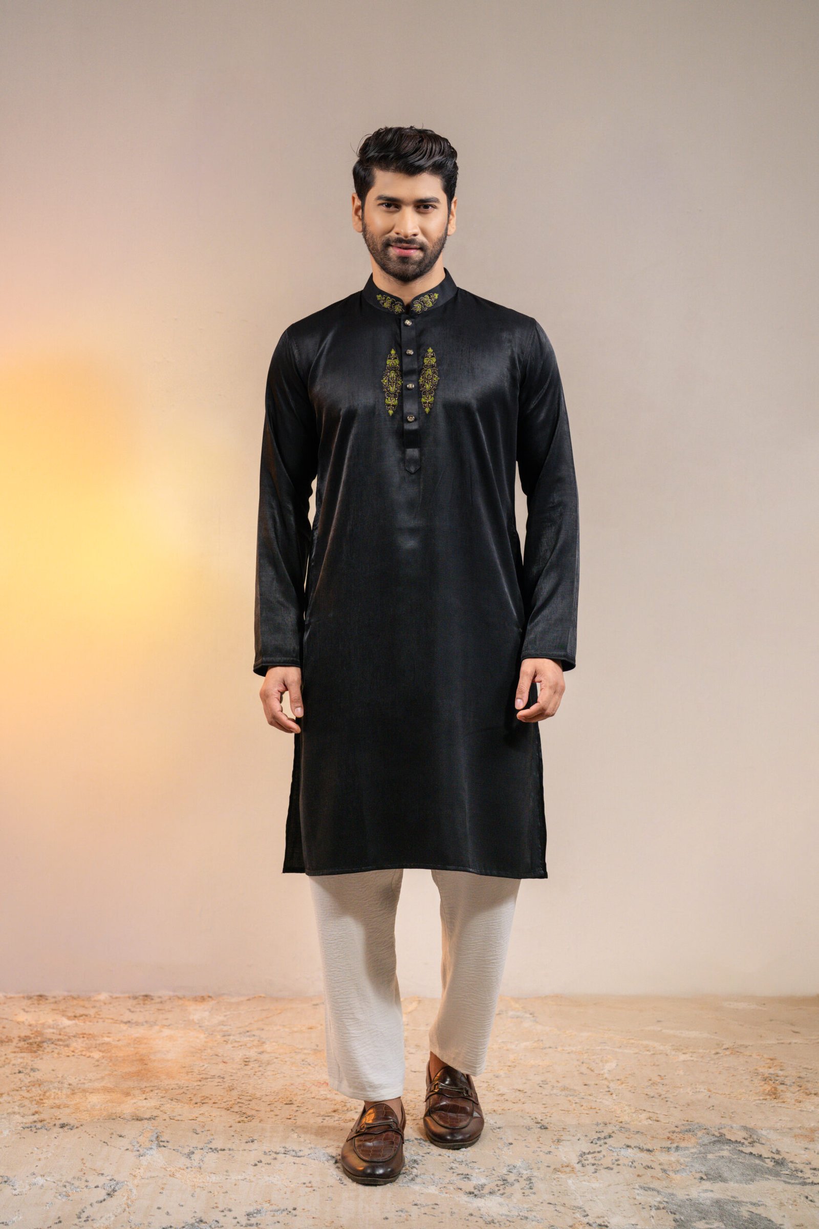 Experience the pinnacle of elegance with PanHabi’s Premium Karchupi Panjabi, meticulously crafted from premium embroidered cotton fabric. This luxurious piece features intricate embroidery, a rich-textured design, and signature premium buttons, making it a perfect choice for special occasions like Eid, weddings, and festive gatherings.
