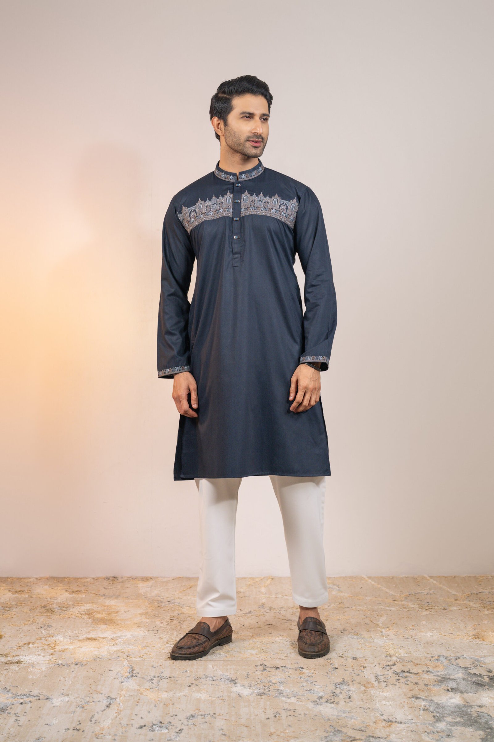 MEN’S PREMIUM PANJABI – Crafted with premium embroidered cotton fabric, offering an exquisite blend of tradition and sophistication. Designed for ultimate comfort, luxury, and style.