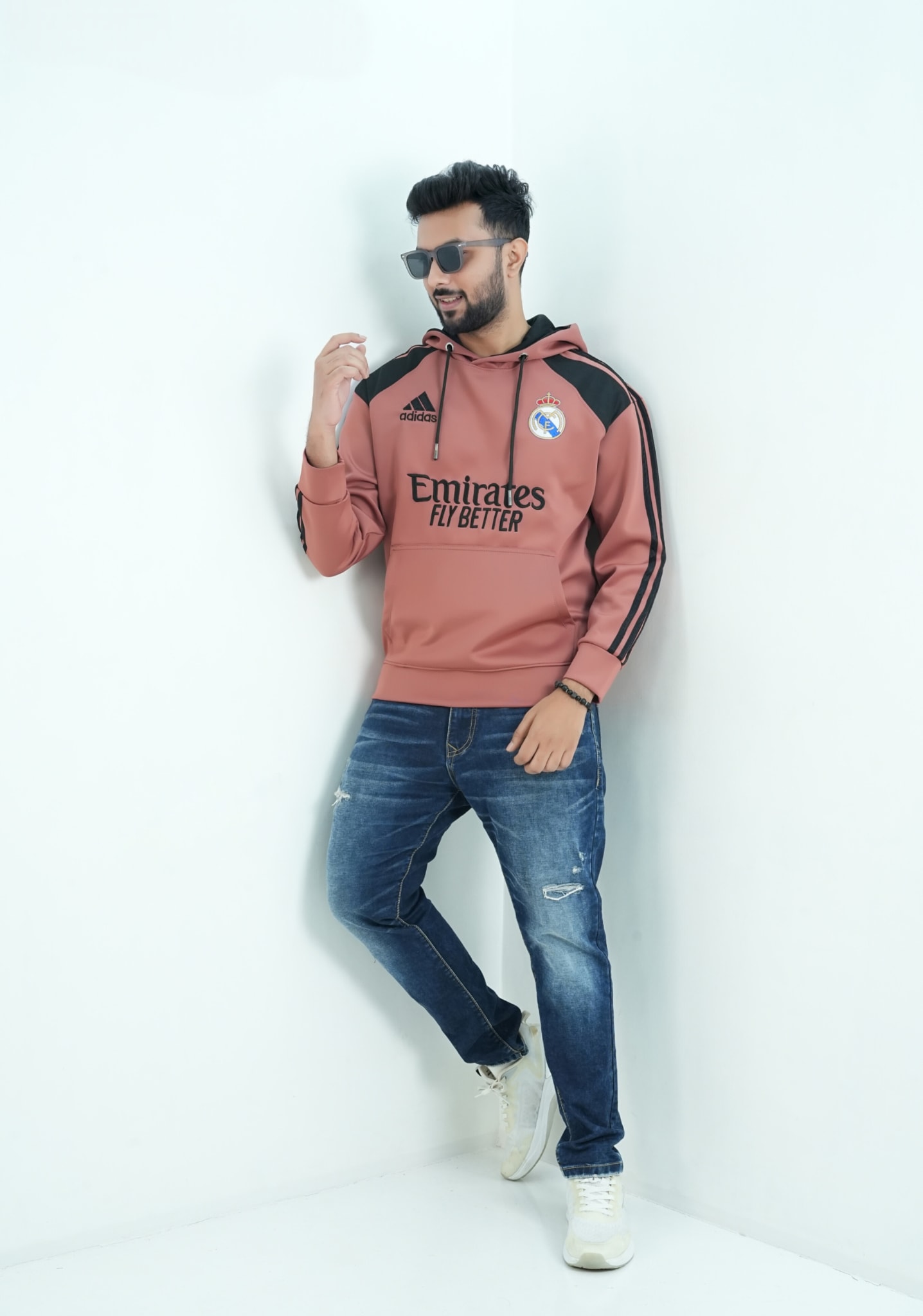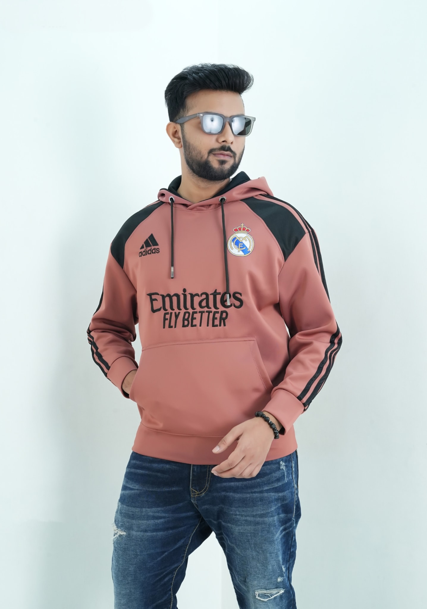 REAL MADRID HOODIE – More than a club, it’s an emotion. Crafted from high GSM China-imported Sprint fabric with export-grade stitching for unmatched warmth, comfort, and durability. A special edition hoodie that celebrates passion and pride.