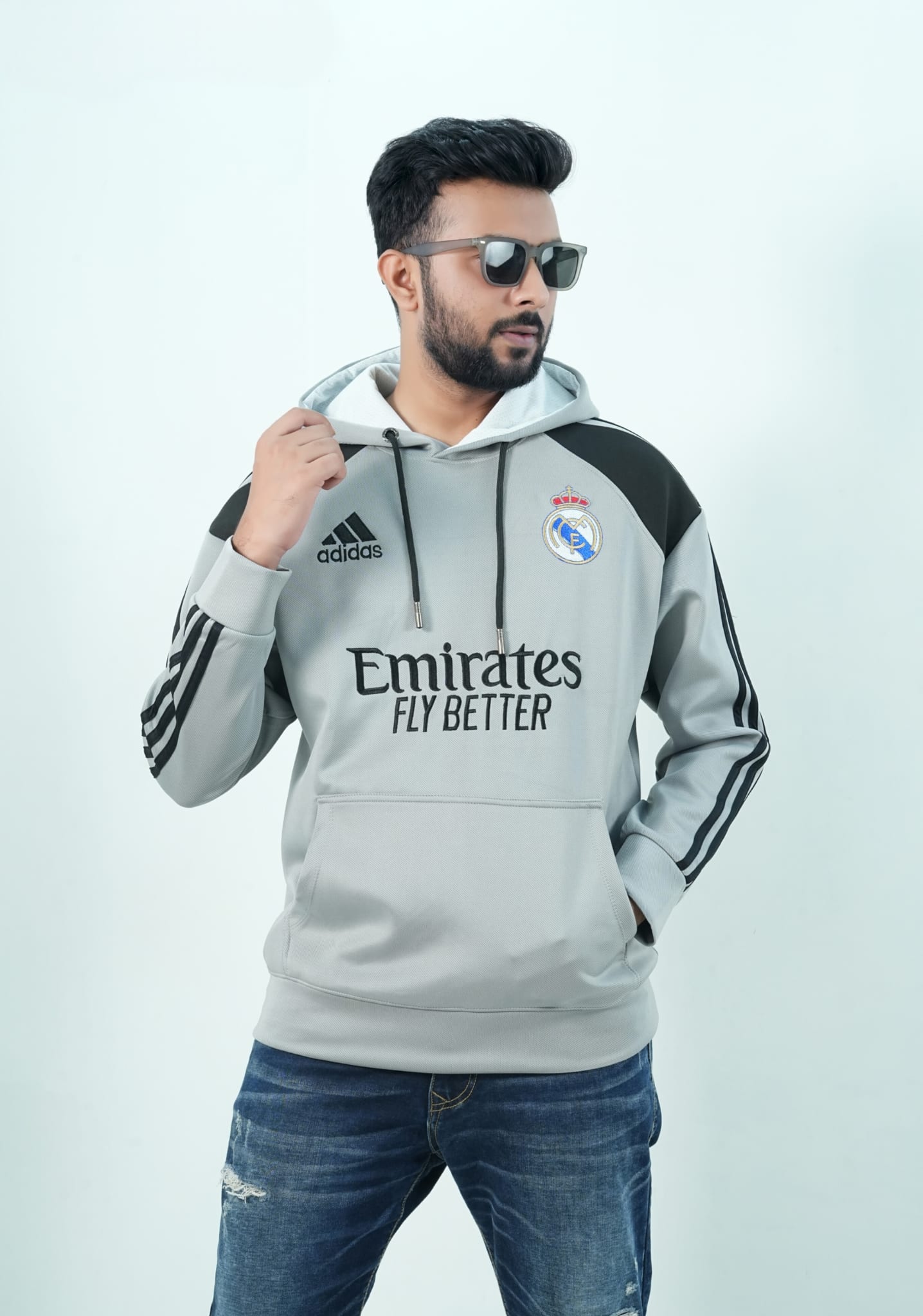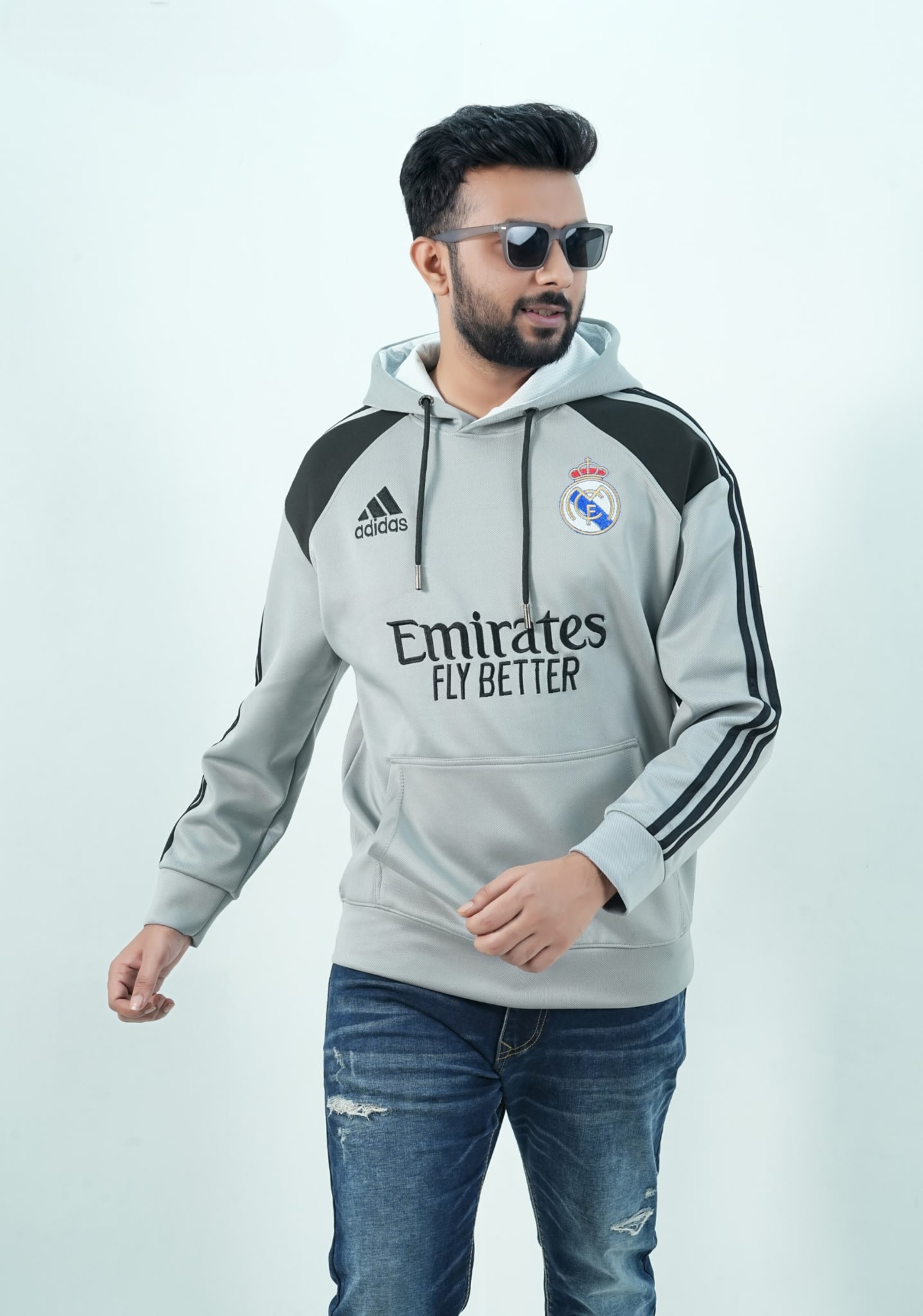 REAL MADRID HOODIE – More than a club, it’s an emotion. Crafted from high GSM China-imported Sprint fabric with export-grade stitching for unmatched warmth, comfort, and durability. A special edition hoodie that celebrates passion and pride.